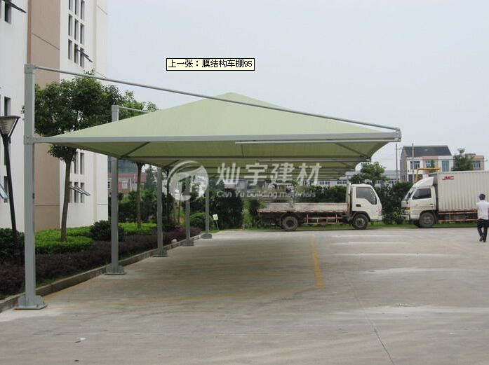 蘇州燦宇是一家集生產與銷售為一體的廠家,燦宇主營耐力板、鋁合金停車棚、膜結構車棚、景觀棚、雨棚,適用范圍有樓宇、小區、別墅、工廠、景觀、校園、車站、機場、體育場等等。我們有專業的設計團隊,根據您的需要第一時間為您提供合理的設計方案;有專業的施工團隊,為您提供上門測量尺寸、設計安裝等一站式服務,外地工地可以給您提供專業的安裝指導;燦宇膜結構廠家直銷,如果您有需求歡迎致電,我們將竭誠為您服務!